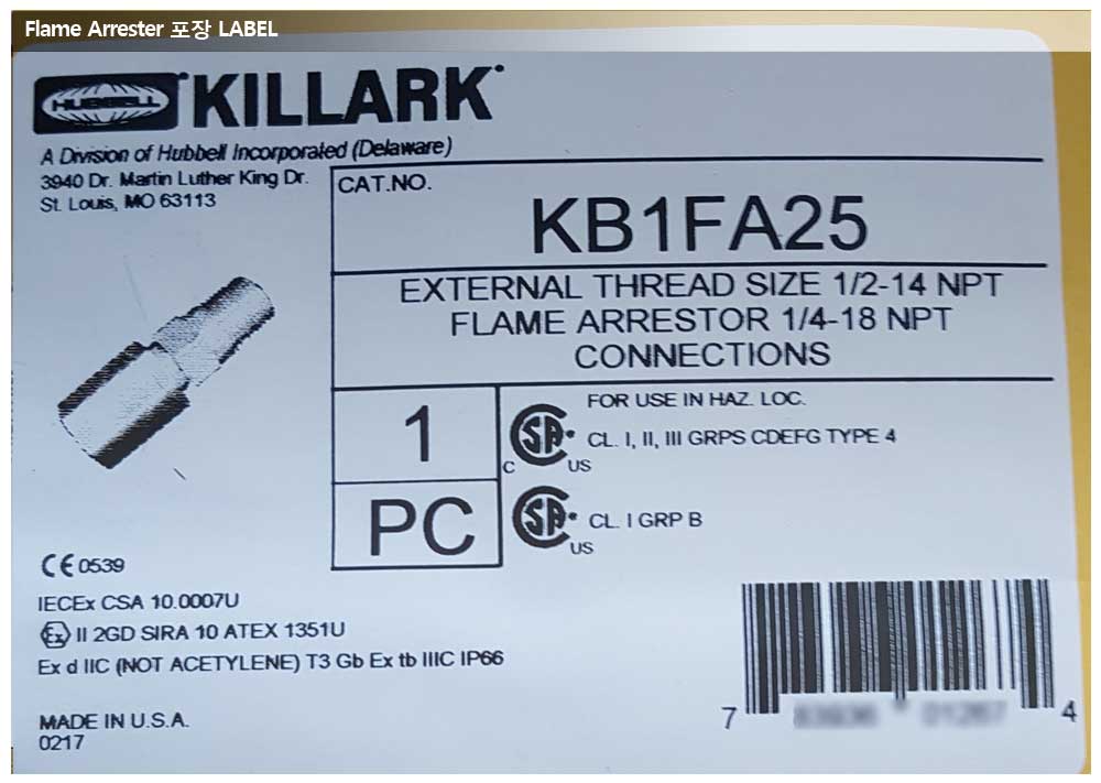 동양피엔에프, IBN SINA POM 프로젝트, Killark사 Flame Arrester 페이지 정보 작성자 관리자 작성일17-03-03 15:29 조회17,476회 댓글0건 관련링크 이전글 다음글 목록 본문 공급품목 : Killark Flame Arrester상세사양 : KB1FA25 모델 댓글목록 등록된 댓글이 없습니다. 이전글 다음글 목록